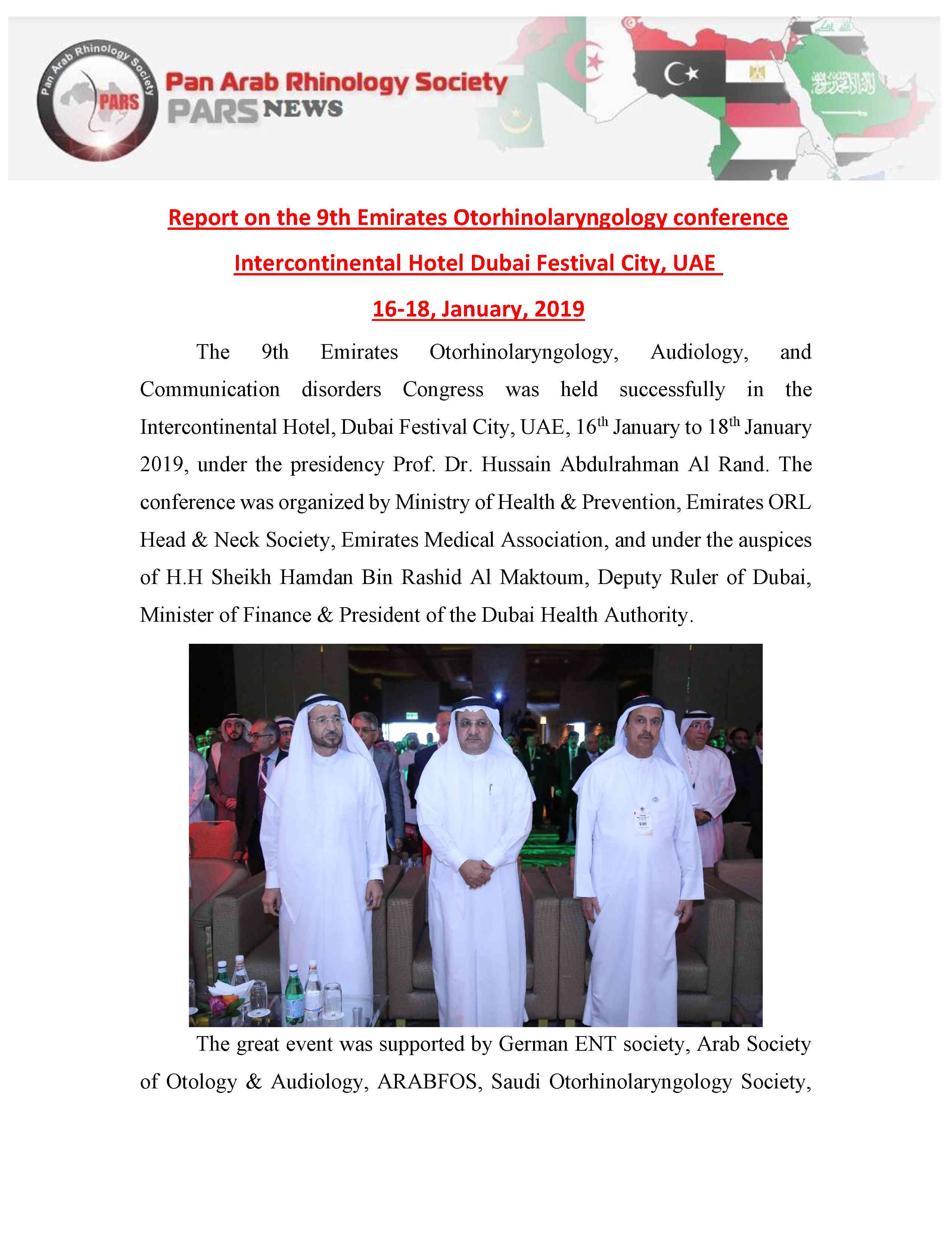 Report on the 9th Emirates Otorhinolaryngology conference Intercontinental Hotel Dubai Festival City, UAE