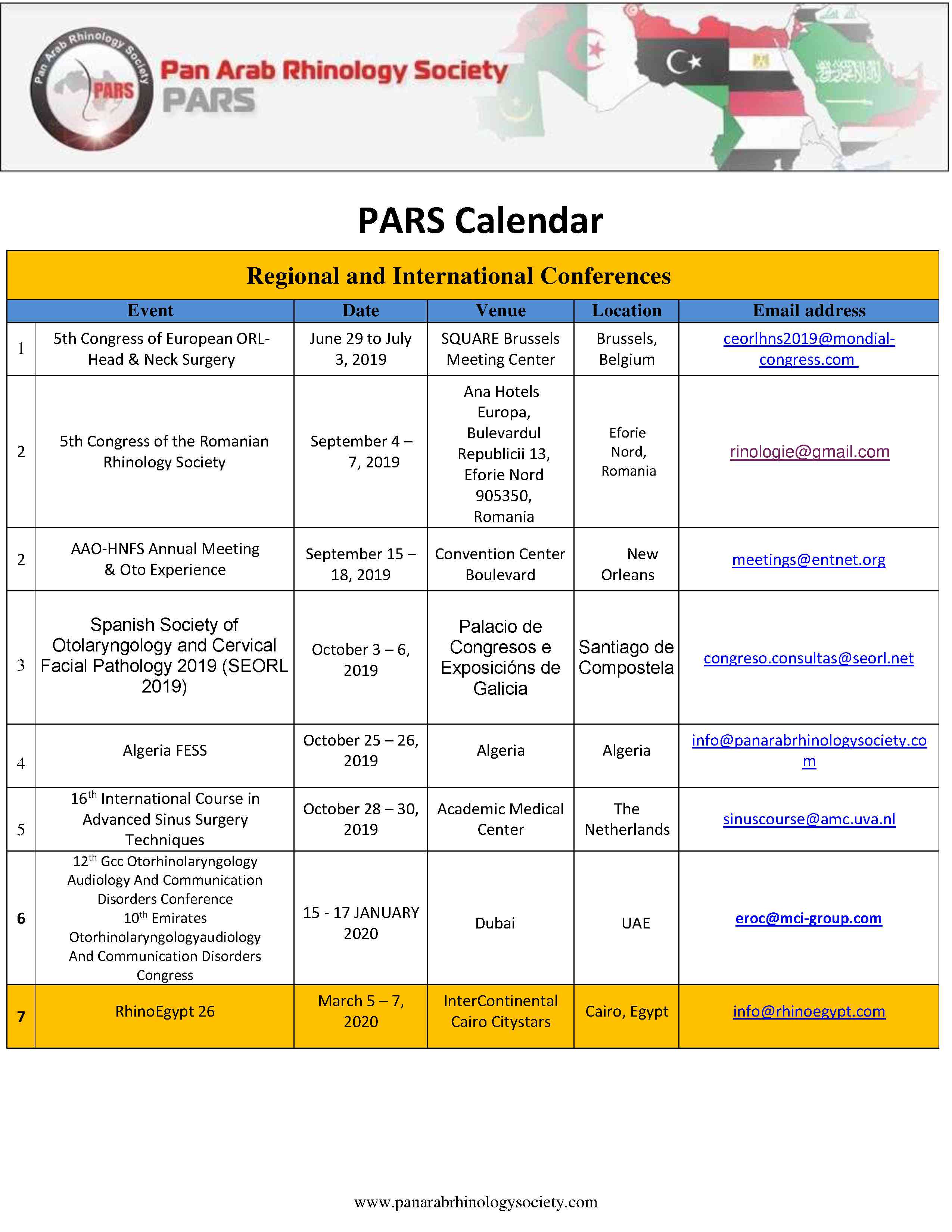 PARS Calendar